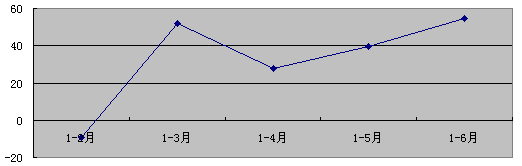 图2 2007年1-6月新增固定资产增长情况(%)