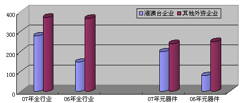 2006-2007年上半年全行业及电子元器件行业内港澳台和其他外商投资企业投资变化情况