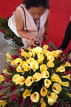 一位市民在花卉博览会上拍摄。 | 云南是当之无愧的“中国花卉产业大省”。据云南省花卉产业联合会统计,2006年云南省花卉产业总产值71.99亿元;自1994年以来,云南鲜切花产量已连续13年雄踞全国第一,在全国鲜切花消费市场上,云南鲜切花占据70%左右的市场份额。 “云花”为什么这样“红”?云南省花卉产业联合会有关人士分析,原因之一是云南有着得天独厚的气候和地理条件,另一方面则与云南地方政府的大力扶持密切相关。 云南独特的立体气候,使各种气候类型的花卉,无论温带的还是热带、亚热带的,都能在这里找到自己的适生地。尤其在以昆明、玉溪为中心的滇中地区,冬无严寒、夏无酷暑,世界主要鲜切花品种在这一带都能实现周年规模化生产,而且品质优良。 “十五”以来,云南省委、省政府把发展花卉产业作为实施绿色经济强省战略的重要内容,从政策扶持、资金投入、环境条件等方面采取一系列措施,促进花卉产业发展。云南省登记在册的花卉及相关企业达1028家,从事鲜切花、盆花及食用、药用、工业用花卉生产和园林绿化苗木生产的农户达8.7万余户。 在产业规模实现快速发展的同时,云南花企注重拥有自主知识产权的花卉新品种研发。据省花产联统计,截至今年5月底,云南花企和科研单位拥有鲜切花新品种自主知识产权证书达23个,还有一批新品种已经通过初审。有的花农也自发购买国外专利新品种花卉,以提升产品质量。2006年5月,呈贡县花农鲁荣华通过代理机构,向德国坦陶公司引进1万株玫瑰新品种“樱桃白兰地”,一时间在业界引起轰动。 尽管在产业规模等方面实现了快速发展,但云南花卉产业也存在不少困难和问题。去年10月,云南省政府出台了《关于加快发展出口导向型花卉产业的意见》,《意见》提出:到2010年,云南花卉产业总产值力争实现140亿元,出口率30%以上。“十一五”期间云南要进一步加快花卉产业发展步伐,推进实施优质花卉倍增、国际市场拓展、物流运输通畅、品种研发创新、“云花”品牌打造五大工程,继续保持“云花”在国内市场的领先地位,并把云南花卉建成优势明显的出口导向型产业。 |