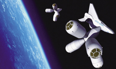 美国www.space.com网站近日报道,世界上第一个太空旅馆有望在2012年建成。届时,太空迷们可以花400万美元在这里住3天。这是“银河套房酒店”的效果图。
