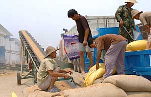 | 中央储备粮河南漯河直属库工作人员将新收购的小麦除杂入库。摄影/本报记者
