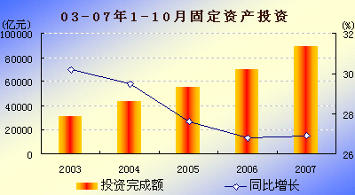 1-10月份,城镇固定资产投资88953亿元,同比增长26.9%。其中,国有及国有控股完成投资38800亿元,增长16.6%;房地产开发完成投资19192亿元,增长31.4%。 从项目隶属关系看,中央项目投资8830亿元,同比增长13.8%;地方项目投资80123亿元,增长28.6%。 从产业看,第一、二、三产业分别完成投资1070亿元、39048亿元和48835亿元,同比分别增长39.9%、29.6%和24.7%。 从行业看,煤炭开采及洗选业投资1258亿元,同比增长24.2%;石油和天然气开采业投资1440亿元,增长12.3%;非金属矿制品业投资2159亿元,增长53.5%;黑色金属矿冶炼及压延加工业投资1982亿元,增长14.5%;有色金属矿冶炼及压延加工业投资983亿元,增长33.4%;电力、热力的生产与供应业投资6017亿元,增长9.4%;铁路运输业投资1590亿元,增长7.9%。 从注册类型看,内资企业投资78995亿元,同比增长27.2%;港澳台商投资和外商投资分别完成4210亿元和5254亿元,分别增长30.7%和19.2%。 从施工和新开工项目情况看,截止到10月底,城镇50万元以上施工项目累计282512个,同比增加33643个;施工项目计划总投资230757亿元,同比增长18.7%;新开工项目191086个,同比增加22518个;新开工项目计划总投资66704亿元,同比增长26.5%。 从到位资金情况看,城镇投资到位资金100141亿元,同比增长28.9%。其中,国内贷款增长14.3%,利用外资增长17.5%,自筹资金增长32.7%。 |