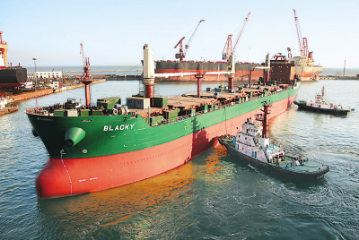 1月2日,河北山海关船舶重工有限责任公司为加拿大建造的首艘3万吨大湖型散货船顺利下水。该船长185米、宽23.7米、型深14.6米、载重3万吨。该船是我国建造的第一艘此类设计的3万吨大湖型散货船。