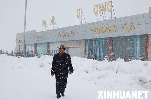 积雪36厘米! 大雪封锁云南香格里拉机场