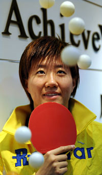 为备战北京奥运会,中国乒乓球队队员郭炎、曹臻,中国篮球队队员杜锋等来到国家体育总局训练局“成就运动视觉中心”进行运动视觉能力训练。图为郭炎在进行动态视觉测试。