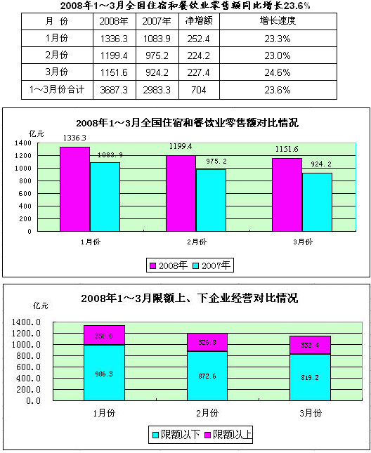 附:2008年1-3月全国住宿与餐饮业零售额对比情况表