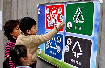 日前,上海开始在居民区推行新的生活垃圾分类管理办法,红、绿、蓝、黑四色崭新的垃圾桶出现在居民区中,引导居民主动对垃圾筛选分类,生活垃圾将不再是“放错地方的资源”。 据上海市容环卫部门介绍,除了大件垃圾和装修垃圾以外,上海新的垃圾分类方式把居民区垃圾分为:玻璃、有害垃圾、可回收物、其他垃圾四类,对应的垃圾桶颜色分别为绿色、红色、蓝色和黑色。 4月19日起,上海在100个居民小区率先推行生活垃圾四色新分类模式,下半年四色垃圾桶还将推广至全上海1000个封闭式居住区。 除封闭式居住区外的其他两大区域,将实施不同的分类方式:年内,景观道路、主要旅游景点等公共场所将全面实施生活垃圾二分类,即分为可回收物、其他垃圾;1000家政府机关、学校、大中型企事业单位等将实施生活垃圾三分类,即可回收物、有害垃圾和其他垃圾。上海市容环卫部门负责人介绍,上海计划五年内形成生活垃圾分类收集、分类运输、分类处置全过程畅通、有序的物流系统,实现全程管理。垃圾分类作为发展循环经济、落实节能减排要求的一项重要措施,不仅是对资源的一种充分利用,更是绿色奥运的一种体现。 上海一位市民程阿姨说:“奥运快到了,我们也要从自身做起,要改变以往生活中的不良习惯,真正让绿色融入生活中去。”
