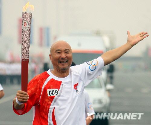 5月27日,火炬手陈佩斯在进行传递。当日,北京奥运会圣火在江苏南京传递。