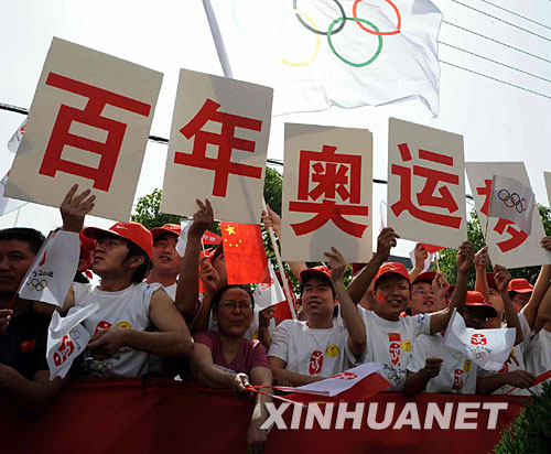 5月29日,淮南市民为奥运圣火传递活动加油。