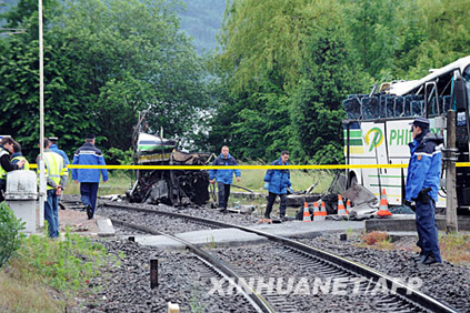当日,法国东部上萨瓦省发生一起火车与校车相撞的重大交通事故,造成数十人伤亡。 新华社/法新
