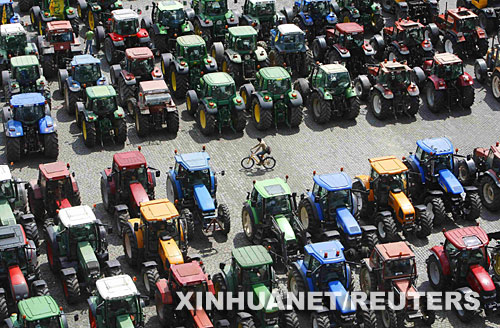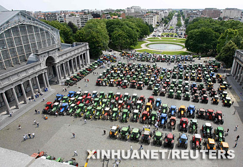 6月18日,比利时农民将拖拉机停放在首都布鲁塞尔市中心进行抗议。新华社/路透