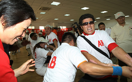 7月6日,上海“迎奥运 展风采”首届无偿献血志愿者趣味运动会在上海体育学院举行。新华社发