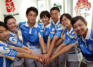 | 天津奥运志愿者为奥运加油。新华社记者 刘海峰