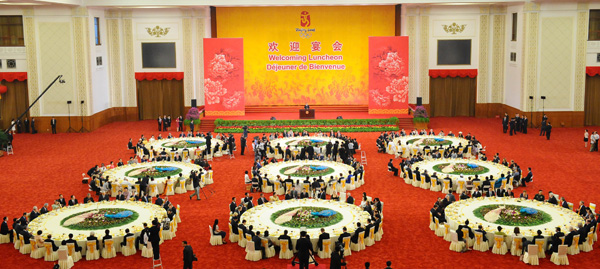 8月8日,中国国家主席胡锦涛和夫人刘永清为出席北京奥运会的贵宾举行欢迎宴会。