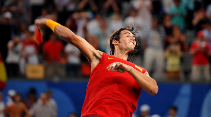 当日,在北京奥运会网球男单半决赛中,西班牙选手纳达尔以2比1战胜塞尔维亚选手德约科维奇。