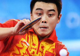 8月16日,中国队在北京奥运会乒乓球男团半决赛中以3比0战胜韩国队,挺进决赛,将于18日与德国队争夺金牌。