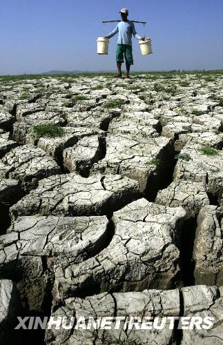 印尼东爪哇省的拉蒙岸地区已遭受持续三个月的干旱,使当地居民严重缺乏洁净水。 新华社/路透