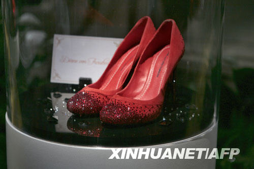 9月5日,在美国纽约举行的梅赛德斯—奔驰时装周上,戴安·冯菲尔斯滕贝格设计的红鞋在纪念《绿野仙踪》的展览上展示。童话《绿野仙踪》中的女主角多萝西拥有一双魔法红鞋,两只鞋碰三下就可以带鞋的主人去任何想去的地方。 新华社/法新