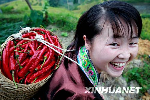 广西融水县杆洞乡花孖苗寨的辣椒多植于深山中,肉厚香甜、辣度适中。今年以来,当地政府组织村民成立辣椒生产专业合作社,在技术上统一指导并包销产品,使全寨的辣椒产量和质量都有大幅提高。