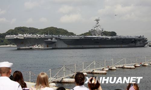 当天,美国最大的核动力航空母舰之一“乔治·华盛顿”号抵达日本横须贺美国海军基地正式驻扎。这是美国核动力航母首次驻扎海外。