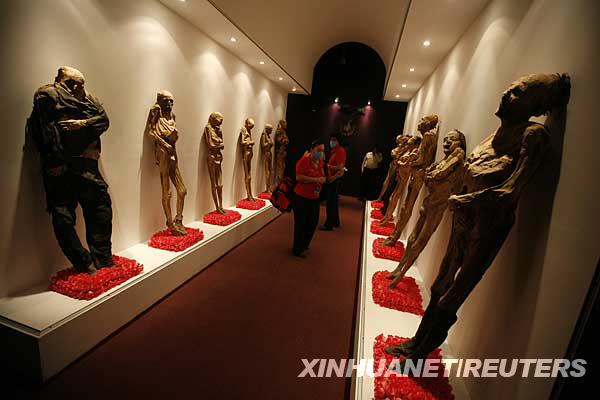 10月7日,在墨西哥北部的蒙特雷举行的瓜纳华托木乃伊展媒体参观日上,工作人员正在拍照。墨西哥中部小城瓜纳华托当地气候干燥,土壤缺水并富含硝酸盐和明矾,这些因素导致“木乃伊”自然形成。本次瓜纳华托木乃伊展将展出24具瓜纳华托木乃伊,将持续到12月28日。新华社/路透