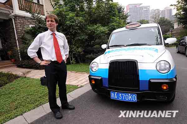 10月15日,英国驻重庆总领事馆总领事尉渟瀚站在出租车前。