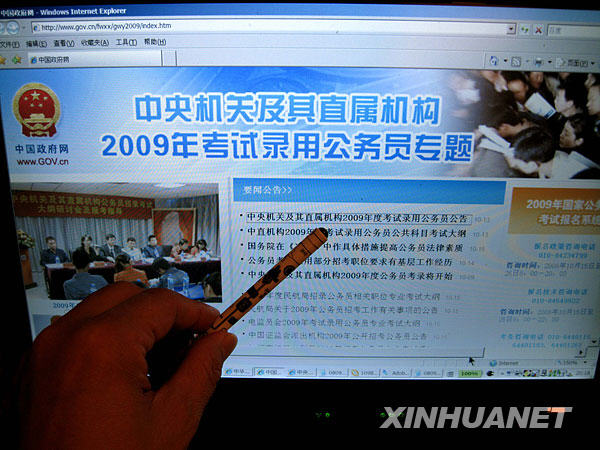 当日,2009年国家公务员考试开始报名,报名全部采取网络报名的方式进行,不设现场报名。