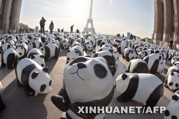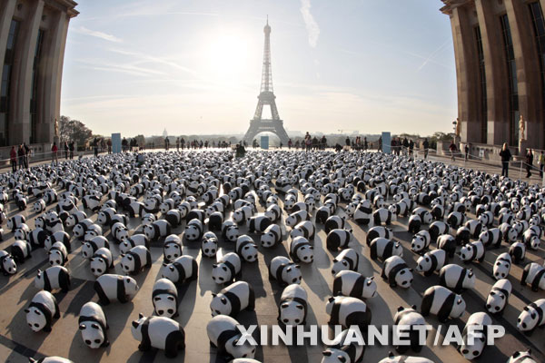 10月18日,在法国首都巴黎,1600只纸制熊猫被放置在广场上供人们参观。