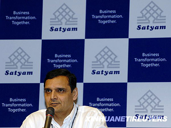 1月8日,印度萨特亚姆电脑服务公司临时首席执行官拉姆·米南帕蒂在海德拉巴举行的新闻发布会上发言。印度软件外包业领军企业萨特亚姆电脑服务公司日前卷入一桩被戏称为印度“安然”事件的印度史上最大企业会计丑闻。其创始人兼董事长拉马林加·拉朱承认,萨特亚姆公司虚报现金和银行结余超过500亿卢比(约合10亿美元),并于7日宣布辞职。新华社/路透