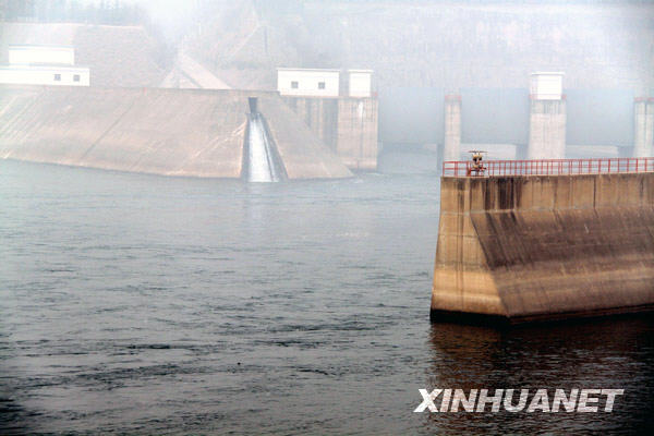 这是2月5日拍摄的黄河小浪底大坝出水口一角。