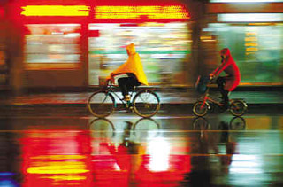 2月12日,北京市民在雨中骑行。新华社记者 公磊
