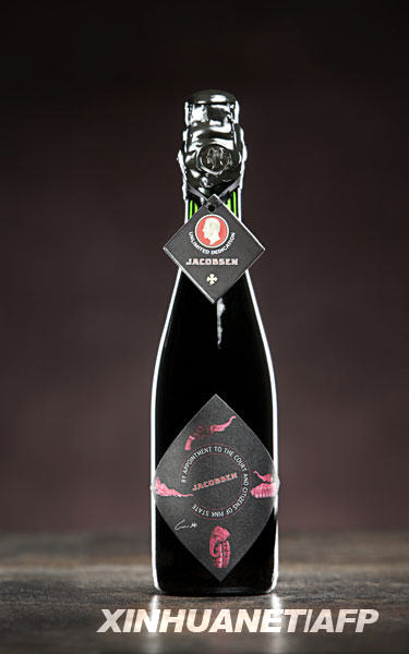 这张丹麦嘉士伯啤酒有限公司2月25日在首都哥本哈根发布的图片显示了一瓶雅各布森2号啤酒。据嘉士伯公司表示,这种啤酒的售价将为270欧元(约合2350元人民币)一瓶。新华社/法新