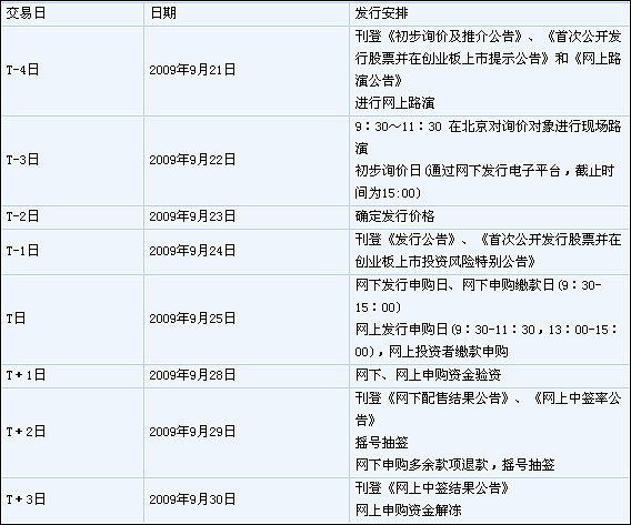 首批创业板上市公司发行日期安排