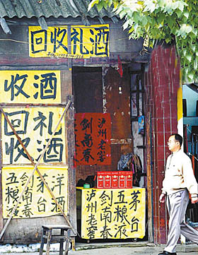 2003年10月8日,这家位于成都通锦桥路口的回收店的店主透露,节假日是请客送礼的高峰期,有些人既不抽烟又不喝酒,就拿这些东西来“变现”。这些东西的收购价格一般都比商场低100元左右。CFP供图(资料图片) |
