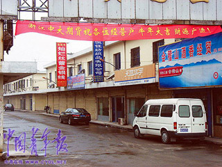 明华村向东百米之外就是钱清镇方家桥村的纺织原料市场,两村经营户沿104国道而建融为一体,只有经营户门店招牌上打头的长途区号让萧绍两地泾渭分明。