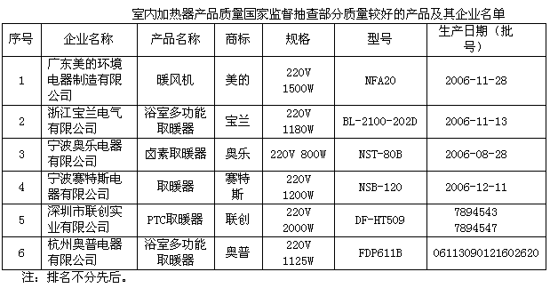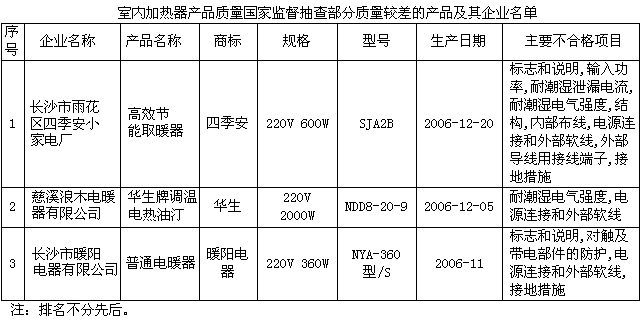 为了维护广大消费者的合法权益,进一步规范室内加热器行业的健康发展,国家质检总局组织对室内加热器产品质量进行了国家监督抽查,共抽查了浙江、广东、湖南、江苏、安徽、上海、山东等7个省市40家企业生产的40种产品,产品抽样合格率为85%。
