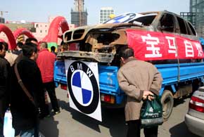 3月15日,在大连举行的“3·15”国际消费品博览会展场外,一名前来投诉的车主运来一辆因自燃被烧毁的名牌汽车。新华社发 | 西安市邮政局周女士去年12月3日在一家商场购物,因为导购小姐的服务态度差而与对方发生了口角,虽然事情经过协调解决。但她已经失去了逛街的心情,周女士以精神损害为由向消费者协会投诉。 陕西省公安厅一位女士在商场打折销售时买了一件衣服,当时人多手杂她没有看清楚就挑件衣服并付了款,回家后试穿发现衣服有残破。她多次去商场要求退货均遭到商场拒绝,理由是打折销售的服装不在质量三包范围内。这位女士认为商场利用活动逃避履行诚信责任,自己在与商场交涉过程中“受了一肚子气”。 记者了解到,尽管市场上的商品很丰富,但令不少人感到困惑的是,购买商品之后厂家的服务就不那么可靠。在西安市一电器商城购物的王先生认为,有时候售后服务比商品本身的质量更重要,因为一旦发生问题与厂家交涉是最让人头疼的。 许多人因为没有得到足够的尊重或者被商家蒙蔽而受到“精神侵害”。中消协近日发布的“全国城镇消费维权状况”调查报告显示,日常消费中的权益损害主要表现在经济损失和精神损害。消费者反映严重损害合法权益的表现是“导致经济损失”、“存在精神损害”和“造成人身伤害”。陕西省消费者协会副秘书长张正佑也证实,陕西省因为要求服务质量而产生的维权案件不断上升,特别是一些有知识、有文化或者在社会上有一定地位的人,更容易因为精神侵害而投诉商家。