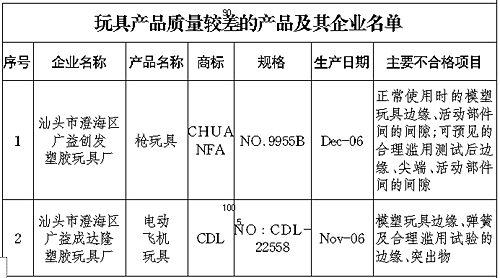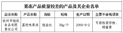 日前,国家质检总局对果冻、婴幼儿配方乳粉、玩具、婴幼儿服装产品质量进行了国家监督专项抽查,共抽查了240家企业生产的265种产品(不涉及出口),产品平均抽样合格率为84.9%。 果冻:共抽查了全国32家企业生产的56种产品,产品抽样合格率为92.9%。主要问题是甜蜜素、可溶性固形物不合格。 婴幼儿配方乳粉:共抽查了全国60家企业生产的60种产品,产品抽样合格率为95%。连续的国家监督抽查促进了企业质量意识的提高,加强了质量管理,使婴幼儿配方乳粉产品质量水平比2006年产品抽样合格率提高了24.6个百分点。抽查中部分国家名牌、免检和市场占有率较高的大型企业的产品,产品抽样合格率为100%。部分规模较小企业产品存在的主要问题是硝酸盐含量超标。 玩具:共抽查了104家企业生产的105种产品,产品抽样合格率为77.1%。本次抽查依据标准对玩具产品的机械和物理性能、燃烧性能、标识和使用说明等项目进行了检验。主要问题是部分玩具产品存在安全问题。 婴幼儿服装:共抽查了全国44家企业生产的44种产品,实物质量抽样合格率为79.5%。此次抽查对婴幼儿服装产品的纤维含量、甲醛含量、pH值、可分解芳香胺染料、染色牢度以及产品标识进行了检验。抽查结果表明,涉及人身健康安全的可分解芳香胺染料项目以及色牢度项目均符合标准要求。主要问题:个别产品pH值不合格、部分产品标签标注不规范。