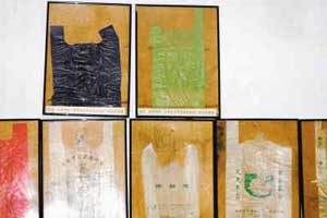 | 在珠岸村,有毒塑料袋被贴上墙,供村民辨认。顾春