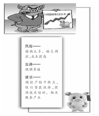 建议一:建长效机制 农民们认为,养猪业和肉食品市场问题已经存在多年了,一直没有解决的主要原因是管理部门的短视行为作祟。生猪生产紧张了,猪肉价格上来了,市场反应强烈了,管理部门才去抓养猪业;一旦猪肉市场平稳了,养猪业又往往被人忽略了,结果猪肉生产和猪肉市场每隔一段时间就要“感冒发烧”一次。 大连养猪协会的行家们认为,政府应建立扶持和保护生猪生产相并举的长效机制。一是调控生猪产销平衡点,着力解决供大于求和供不应求的历史性矛盾,避免大起大落现象,给生产者和消费者带来灾害;二是调控生猪生产到流通环节之间的合理利润分流,着力解决市场风险、疫情风险都由生产者来承担的历史性问题,充分发挥政府职能作用和行业协会的作用。 建议二:放贷款相助 东北的农民们叹息道:“近年来生猪缺了,各方面都重视农民养猪了;可是现在农民要发展养猪产业,银行仍然不给贷款”。养猪业直接影响着城乡肉食品市场,它也是关乎老百姓菜篮子质量的大工程。黑龙江省、吉林省和辽宁省的一些农民说起发展规模养猪产业的问题,几乎众口一词:“俺们农民想发展规模化养猪,苦于没有资金和技术。政府扶持养猪的产业政策不知道为什么在银行那里就行不通?”目前各类银行根本不给养猪业贷款,信贷不支持是生猪发展中的最大瓶颈问题。 辽宁省大连市养猪协会彭会长是普兰店农村远近闻名的规模化养猪大户。老彭说,他盼望国家能重点扶持规模养猪场建设,按投资比例扶持养猪农民,比如按投资比例的20%给予养猪业政策性补贴,以加快规模化、现代化生猪生产步伐,变现有撒芝麻盐政策为重点扶持政策。老彭说,眼下他们规模化养猪大户最头痛的就是流动资金贷款问题。 建议三:完善配套政策 东北各地的农民们盼望国家从稳定经济战略的高度出发,建立适应农村养殖业需要的金融保险体系,发挥银行、保险、期货的保障作用;政府应出台鼓励兴办养猪业专业技术培训和开展养猪业社会化服务的扶持政策。农民们盼望政府投入一定资金,建立扶持农民养猪业的技术培训中心,破解农民发展养猪的技术难题,提高养猪业的专业化素质;他们希望政府出台政策,出资金扶持,建立一个为农民规模化养猪提供社会化服务的产业组织。农民们说,农民经济合作组织、专业行业协会和社会化服务组织的成长,对理顺生猪产销关系、供求关系、利益关系,保持生猪产业和肉食品市场的和谐发展都十分有利。