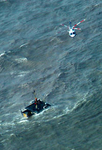 11时03分,从东营机场起飞的直升机又一次回到了出事现场,发现另外七名遇险船员已陷入了更加危急的险境。遇险船船体已全部被海水淹没,七名船员全部爬到遇险船指挥楼顶部,紧紧抱住栏杆求生。此时,机长再次以精湛娴熟的驾驶技术将直升机悬停在遇险船上空,由救生员以最快的速度将他们全部救起。 |