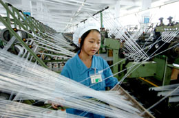11月29日,工人在福建浔兴拉链科技股份有限公司生产车间工作。 近年来,福建省晋江市充分发挥沿海区域优势,大力发展民营经济。晋江市现有一般纳税人资格企业11953家,个体工商户12936家,形成了以纺织服装、制鞋、陶瓷石材、食品、轻工玩具等五大传统产业和车辆机械、精细化工、生物制药、纸制品、新型材料业等五大新兴产业,2007年前三个季度,全市完成生产总值413.52亿元,同比增长15.5%,财政总收入44.69亿元,同比增长25.9%。新华社记者:张国俊