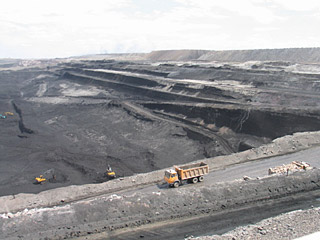 | 在新疆准东煤炭基地神华新疆分公司的巨大露天煤矿里,巨型挖掘机和运煤车形似蚂蚁。新华社记者 刘兵