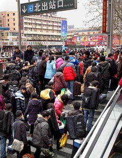 1月21日,旅客们从郑州火车站的地下出站口出站。新华社记者 王颂