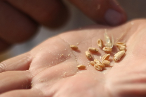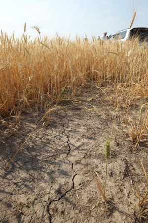 因为干旱,已成熟的小麦果实质量明显差于丰收年。新华社记者 鲁金博/摄 |